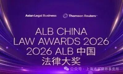2026年3月18日,汤森路透旗下权威法律媒体《亚洲法律杂志》(”Asian Legal Business”)正式发布“2026 ALB 中国区域法律大奖”入围名单。凭借在知识产权领域多年深耕细作、卓越业绩和良好口碑,上海鸿孚律师事务所再次成功入围,荣获 “年度争议解决精品律师事务所大奖”。